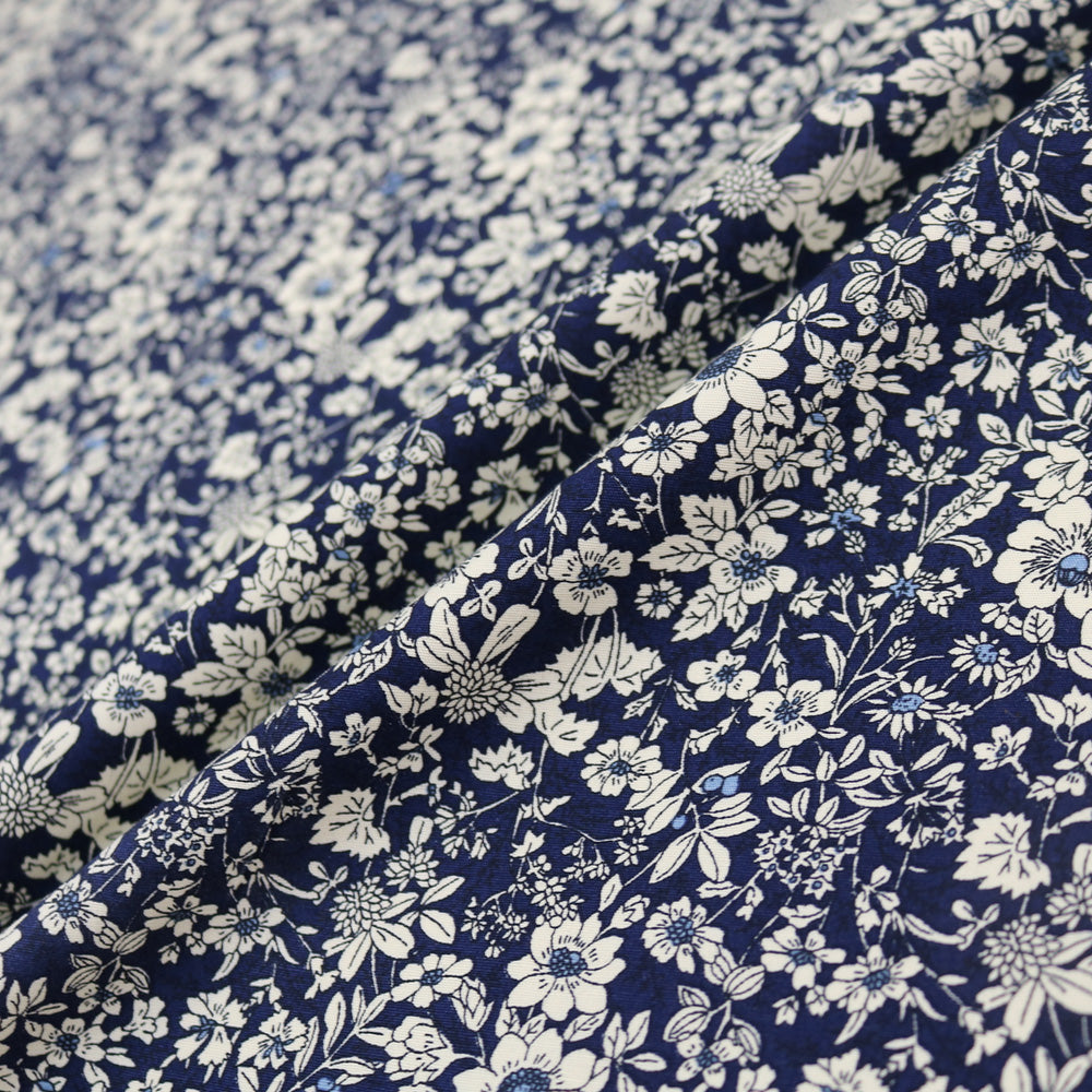 Dressmaking and Patchwork Floral Cotton Poplin - Navy Blue