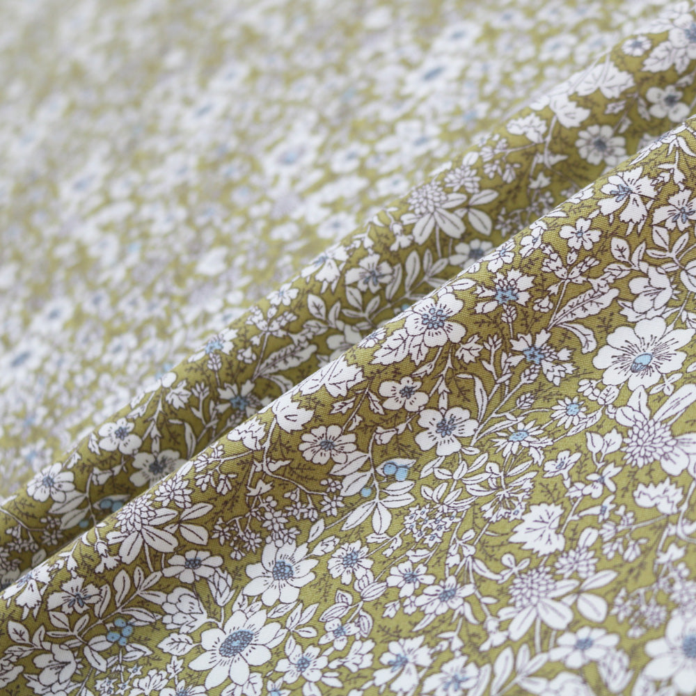 Dressmaking and Patchwork Floral Cotton and Poplin - Olive Green